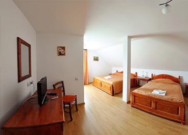 - 2 camere cu pat dublu + pat single + baie proprie (camerele 5 si 6)